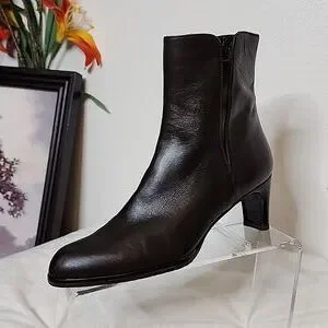 RARE Vintage Stuart Weitzman Heeled Boots Dark Brown Nappa Leather Ankle Booties