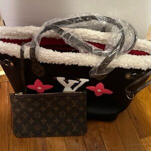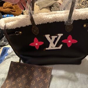 Stylish designer tote in classic black, featuring striking red and white accents. Perfect for adding a touch of elegance to any outfit.