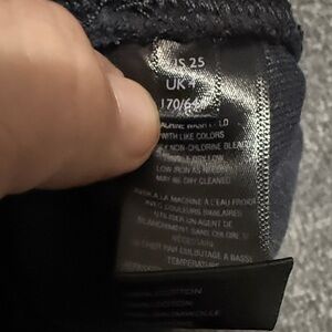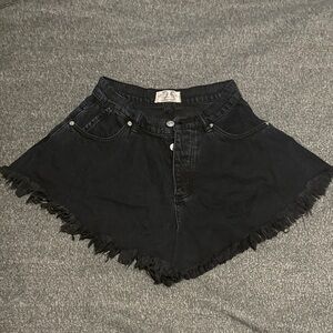 Stylish black jean shorts. Features frayed hem. Perfect for casual wear.