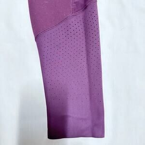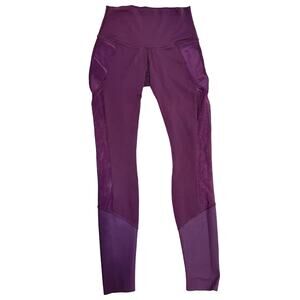 Rare find! Featured in Bordeaux Drama burgundy color, the color of fall 2025. High rise waistband to give you the support you need. Full on luon fabric is sweat wicking and four way stretch. Strategically placed mesh and laser cut panels to keep you cool. Side pockets.