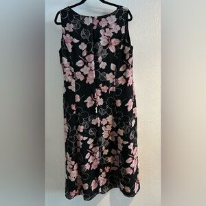 Julian Taylor Black Dress with Pink Floral Design Size 16 Petite