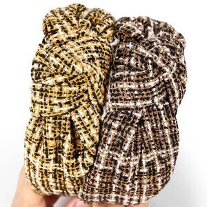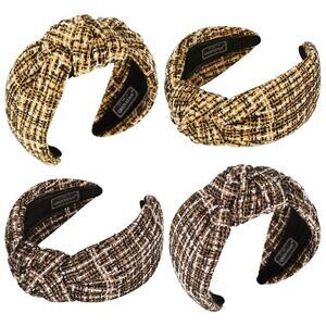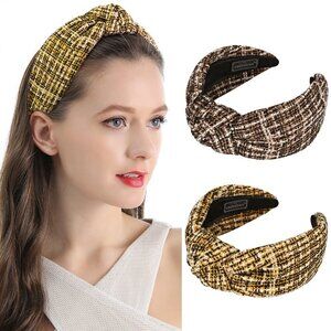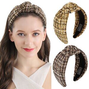 [ORIGINAL_TITLE: Knotted Turban Headbands Women Men Plaid Suede 2-Pack Fashion Accessory]