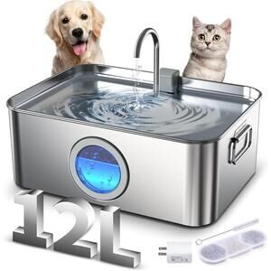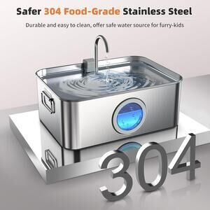 🐱3.2 Gallon/12L Capacity for Multi-pet Homes - Our stainless steel dog drinking fountain is upgraded to have large 3.2 Gallon capacity with deeper and wider drinking area. Perfect for large dogs or multiple pets to drink together. Reduces the frequency of refill for you while ensuring the daily water needs of your fur babies, promoting your lovely friends' kidney and urinary health.🐶Premium & Safer SUS304 Stainless Steel - The dog water bowl dispenser is made of durable, rust and corrosion-resistant food-grade 304 stainless steel, which is firmer and dishwasher safe to clean and maintain. Ensuring a clean and safe water source for your furry-kids, allowing you to enjoy a more relaxed pet care experience.🐱Visible Window + LED Indicator - Our pet water fountain is upgraded to have a transparent Window + red light reminder filling function. The transparent window for easy monitoring of water levels. When the water level reaches the lowest water level, the pump light will change from blue to red to reminder adding fresh water, and the pump will stop working to protect the motor.🐶Super Quiet Water Pump & Faucet Design