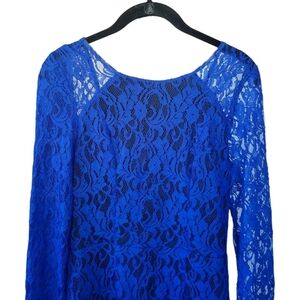 BCBGENERATION Electric Blue Lace Bodycon Mini Dress Womens 10 NWT Long Sleeve