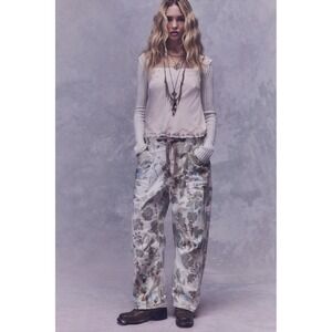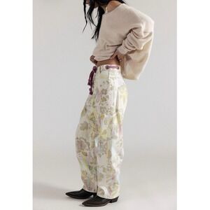 Free People Moxie Printed Floral Flocked Barrel Jeans Size 30 w/ Belt NWT