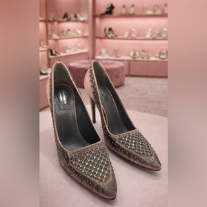 Limited Edition Alberta Ferretti Pink & Gray Embellished Heels Size 8.5