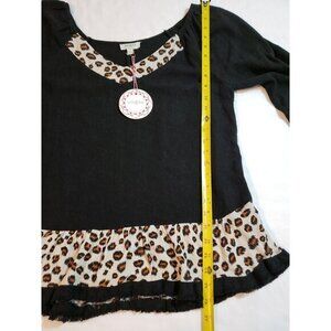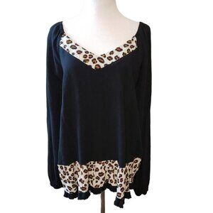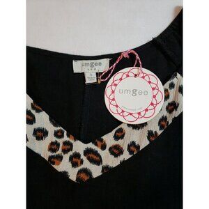 Umgee Linen blend tunic black animal print long balloon sleeves size S NEW