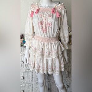 LoveShackFancy 100% Cotton Pop Over Skirt embroidered White & Pink Dress Size S