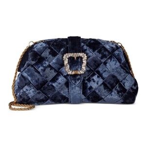 NEW SAM EDLEMAN BRIT FRAME BLUE VELVET CRYSTAL CLUTCH SHOULDER BAG