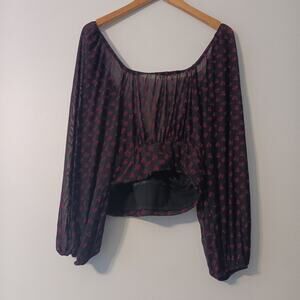 Free People Sweetie Pie Sheer Floral Mesh Top Black M