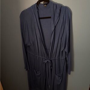 Stay cozy and stylish with this elegant blue hooded sweater. Perfect for lounging and relaxation.