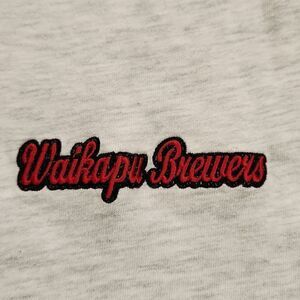 This is a polo shirt with "Waikapu Brewers" stitched on the upper left chest. It is a light gray color.