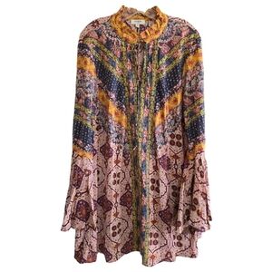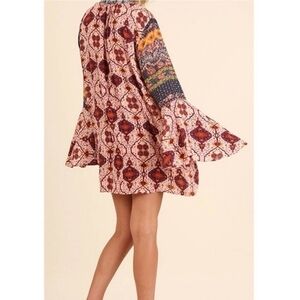 Umgee Daydream Believer Bohemian Bell Sleeve Mini Dress Medium Mixed Prints