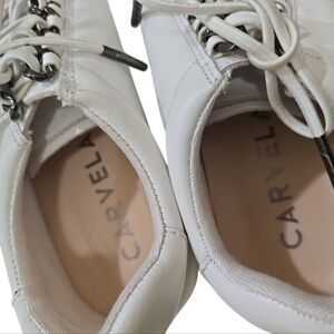 Carvela UK White Sneakers With Metal Chain Lace Through 39 8.5 Elastic Laces