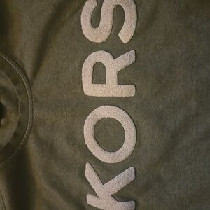 Olive green crewneck with bold KORS logo. Soft and stylish for everyday wear.