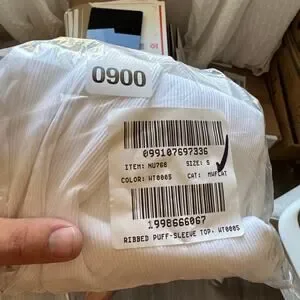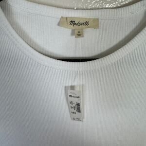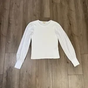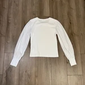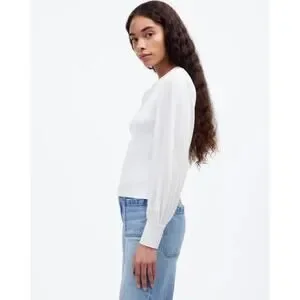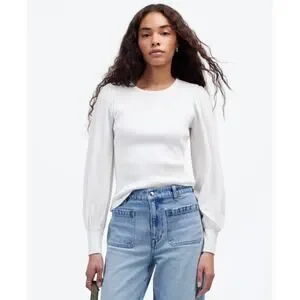 Madewell Ribbed Puff-Sleeve Top Sz S White Long Sleeve Slim Fit Pullover Cotton