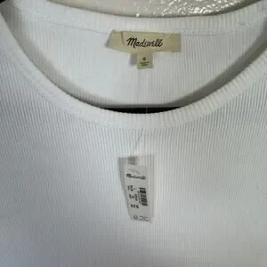 Madewell Ribbed Puff-Sleeve Top Women’s Size Small – Item NU768, White Colorway, Long-Sleeve Style, Slim Fit Silhouette, Pullover Design, Ribbed Cotton Fabric, Puff Shoulder Detail, Classic Crew Neckline, Lightweight Stretch Construction. A Feminine Take on a Timeless Essential, Perfect for Everyday Wear or Layering.