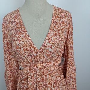 NWT Old Navy Waist Defined Crepe Side Cutout Maxi Pink Ditsy Floral Medium