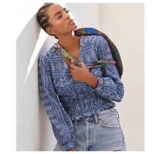 A beautiful blouse by fan favorite Anthropologie. Lovely details throughout. It is a small but could easily accommodate a medium.