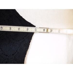 Add a touch of elegance and glam to your wardrobe with this stunning Betsey Johnson dress. The black lace overlay adds a sophisticated touch to the bodycon style, while the V-neckline and sleeveless design keep it playful and perfect for a party or cocktail event. The dress is made with stretch fabric for a comfortable and flattering fit, and the zip closure adds a touch of convenience. This dress is perfect for the fall season and is available in size M. The garment care and material are unknown, but the dress is sure to make you stand out in any crowd.