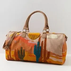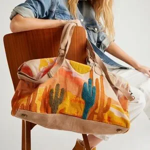 Free People New Horizons Suede & Canvas Weekender Bag- Cactus