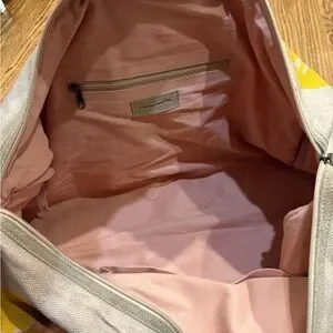 So made for your next getaway, this weekend-ready bag is featured in a soft cotton and slouchy silhouette with a picturesque print, adjustable crossbody strap, and top zip closure.