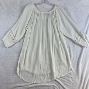 Ariat Tunic Blouse Sz L White Dainty Lace Long Sleeve Cottage