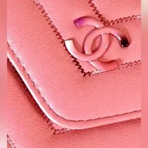 Pink CHANEL Compact Leather Wallet Card Holder