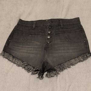 No Boundaries Women's Button Fl Frayed Denim Shorts Size 13