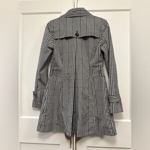 Classic meets chic in this BCX black and white gingham trench. The tailored A-line silhouette is ultra flattering—nips in at the waist and flares gently without needing a belt. Perfect for spring, fall, or layering year-round.