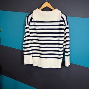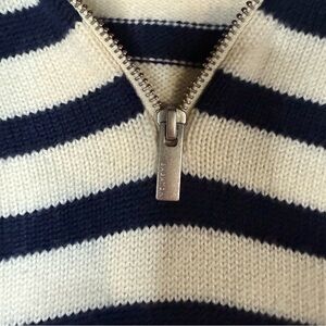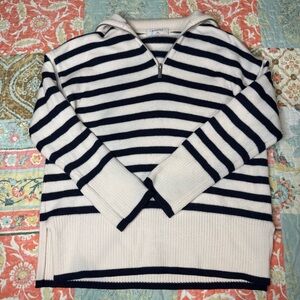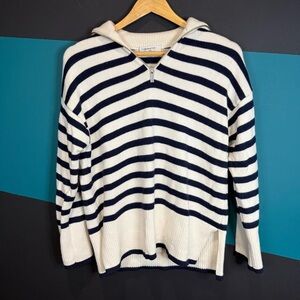 Babaton 2XS Cream and Navy Striped Merino Wool Sweater Preppy Quiet Luxury Soft