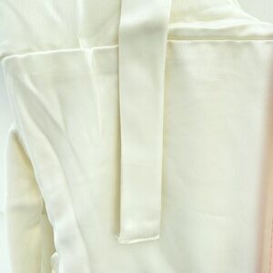 - Satin, attached ties, lined, side zipper with hook and eye closure, sleeveless