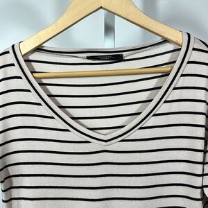 MAX MARA WEEKEND Women's V-Neck Striped 3/4 Sleeve Top Cream Size Small