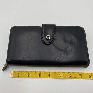 Keywords: Aigner wallet, black leather, long wallet, organizer wallet, snap closure, zip around, card holder, ID window, travel wallet, daily carry, fashion accessory, designer wallet, luxury wallet