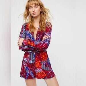 Free People Aubrey Romper Long Sleeve Jumpsuit Plunging Neckline