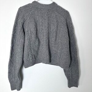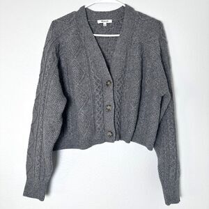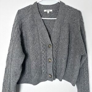 Madewell Women's Gray Cable Knit Cropped Cardigan Sweater - Size L