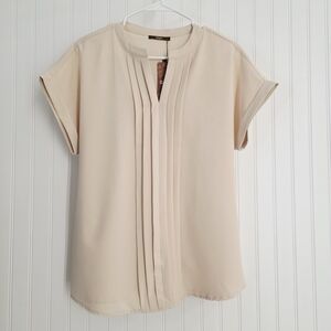 This elegant cream top features a stylish pleated front, perfect for any occasion. Its soft fabric ensures comfort and sophistication.