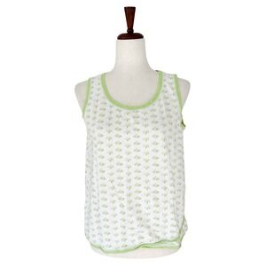 Garnet Hill Green Women's Pajama Top Small 100% Cotton Green Print Sleeveless