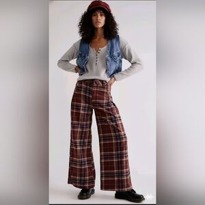 Free People Wide Leg Pants Size 0 Out Of Touch Extreme Plaid Pockets Burgundy