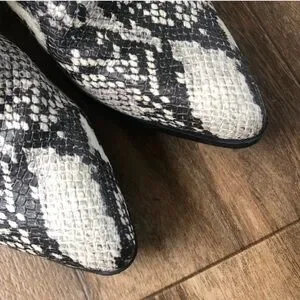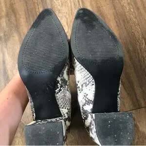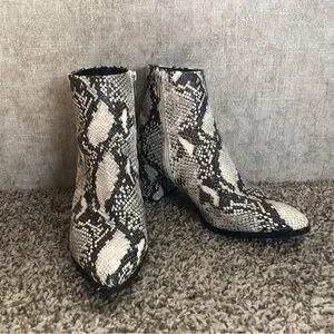 Madden Girl Boots womenโs sz 8.5M, Snake print heeled point toe chunky bootie