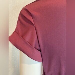Soft Stretchy Wrap-Look Pull-Over Belted Dress~Short Rolled Sleeves~Size M