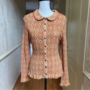 Free People Caught a Feeling Cardi in Cinnamon Combo Blouse Buttoned Sz Medium