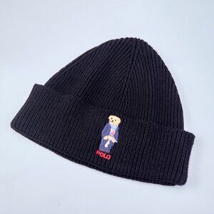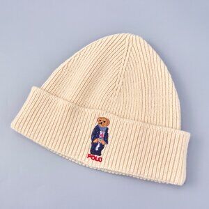 Polo Ralph Lauren Single-sided rolled-brim embroidered bear knitted hat