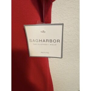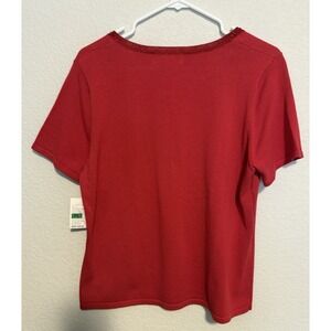 Sag Harbor Petite Large Red Knit Top Beaded Square Neck Short Sleeve Blouse