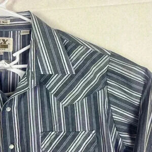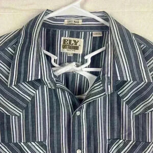 Ely Cattleman Pearl Snap Western Shirt Men XLT Tall Man Striped Blue Rodeo