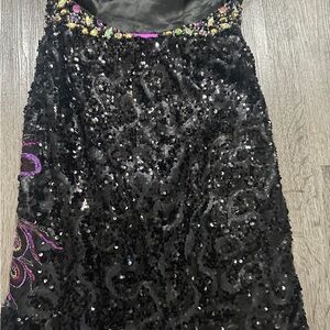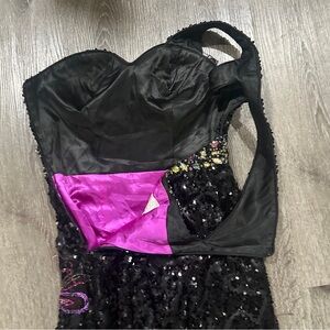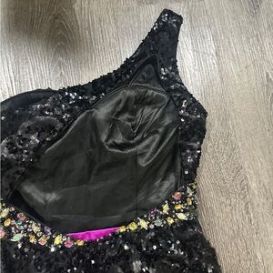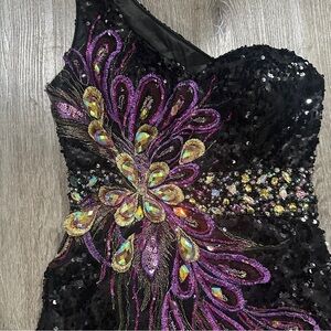 Cinderella One Shoulder Open Back Full Sequin Black & Purple Peacock Dress Sz 4