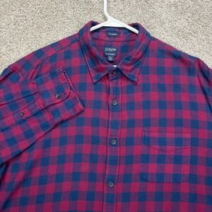 J Crew Flannel Shirt Blue Red Check Button Up Long Sleeve Mens XL Burgundy Navy