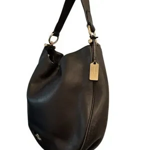 Coach Nomad Black Leather Hobo Bag with Gold Accents