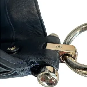 Has some cracks in leather on strap at seams and near snap button closure. See last 4 photos. Otherwise the bag is in really nice condition.