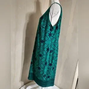 Teal & Navy Sleeveless Patterned Dress